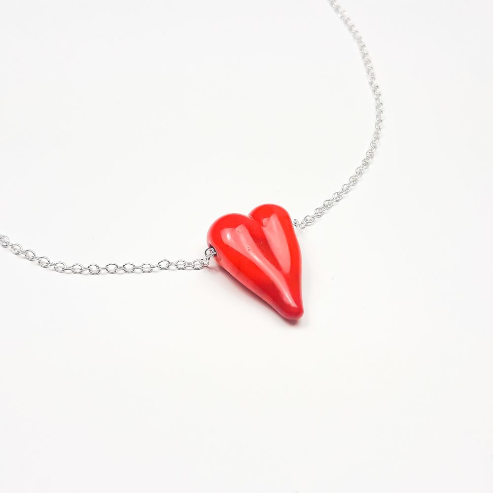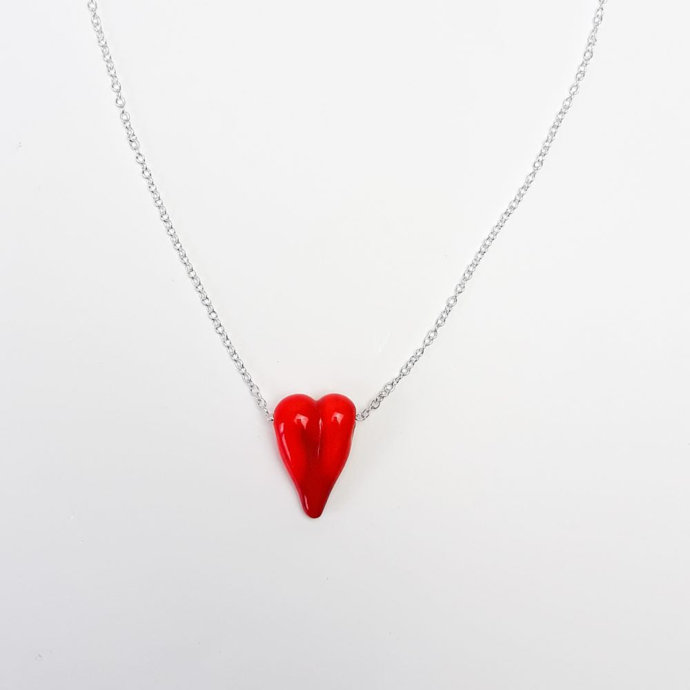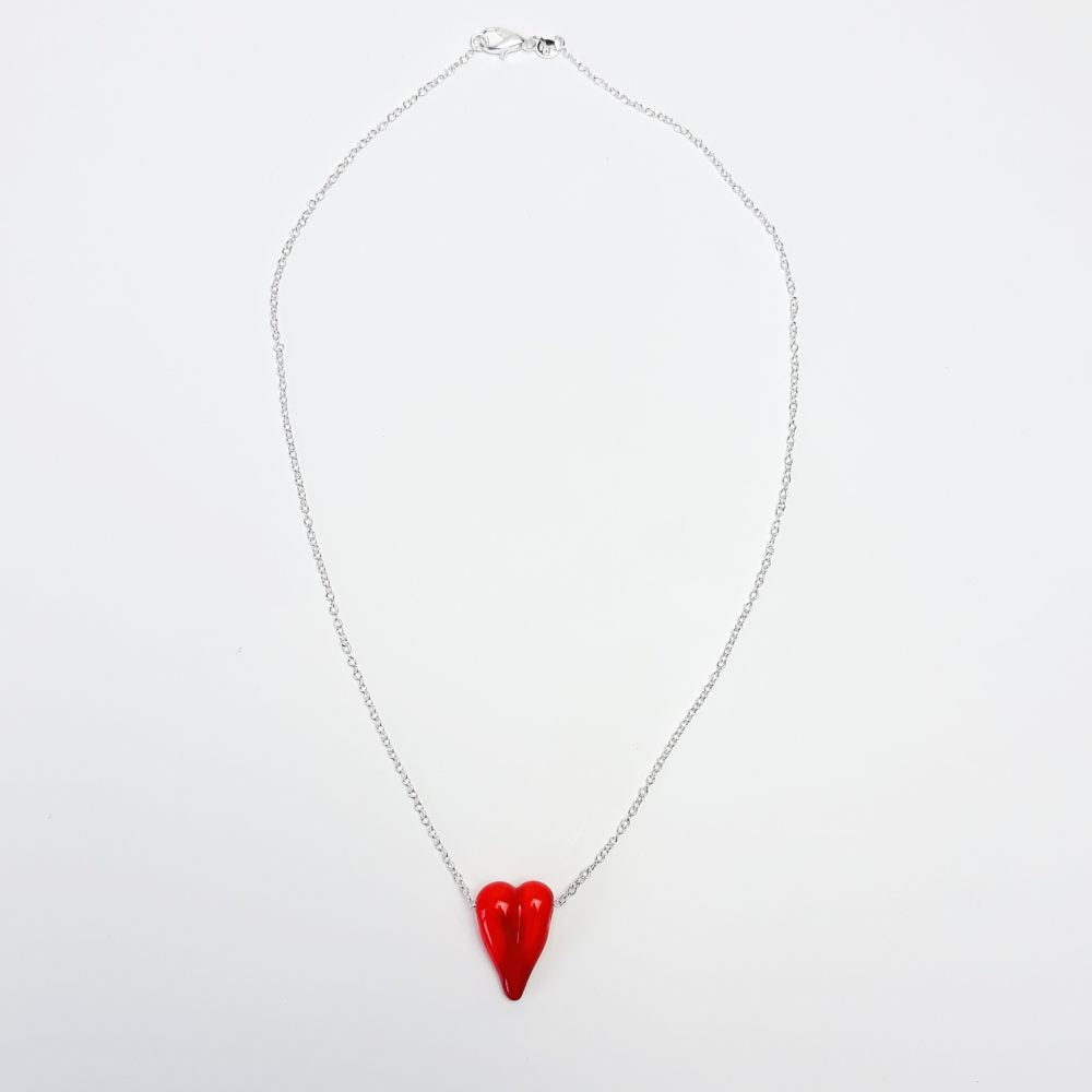 Ein rotes Herz aus einer handgedrehten Glasperle als Kette.