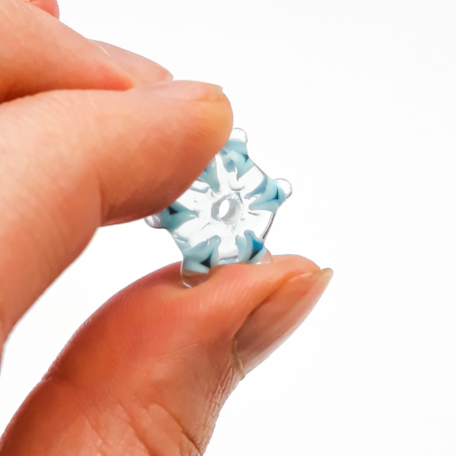 Handgedrehte Glasperle in Schneeflocken-Design