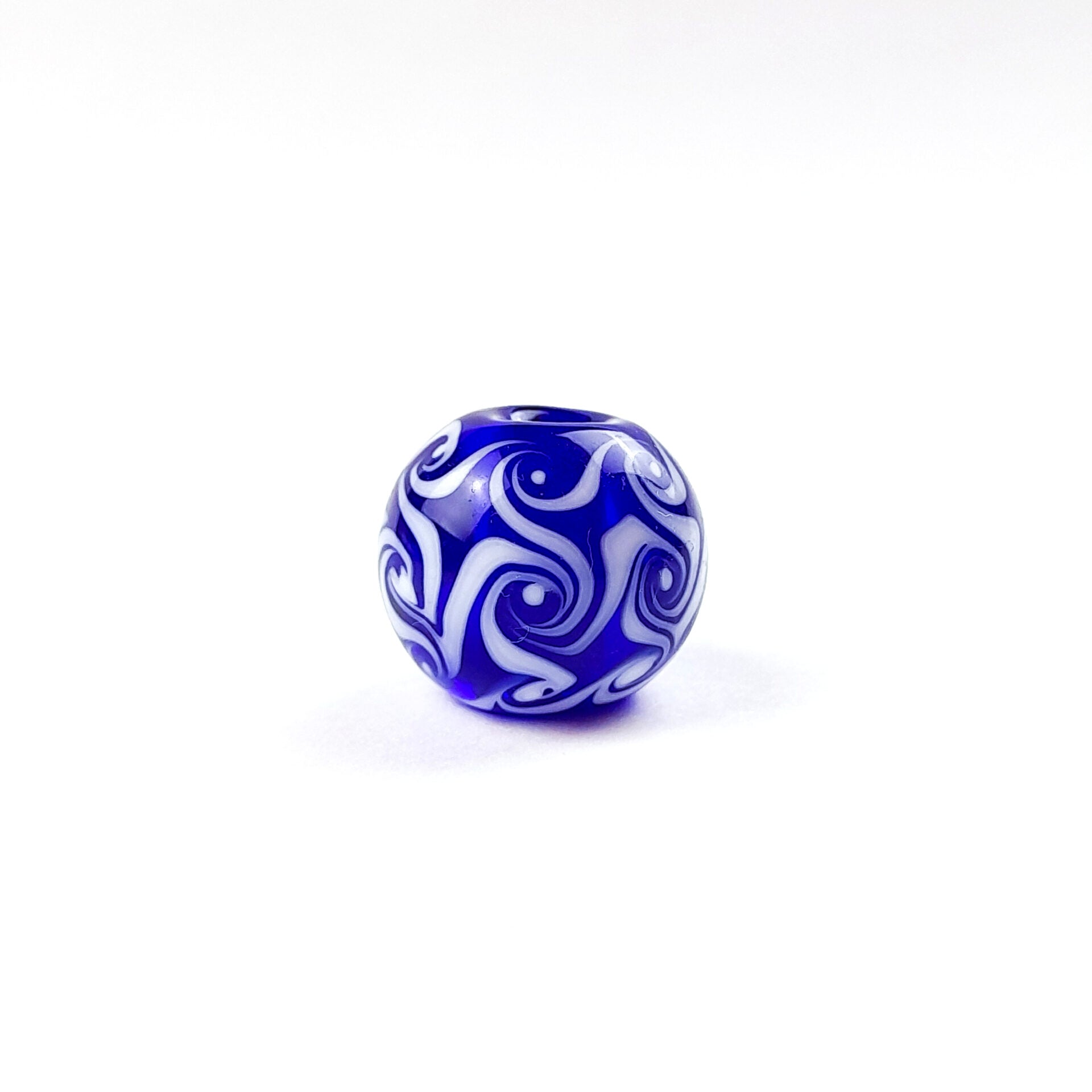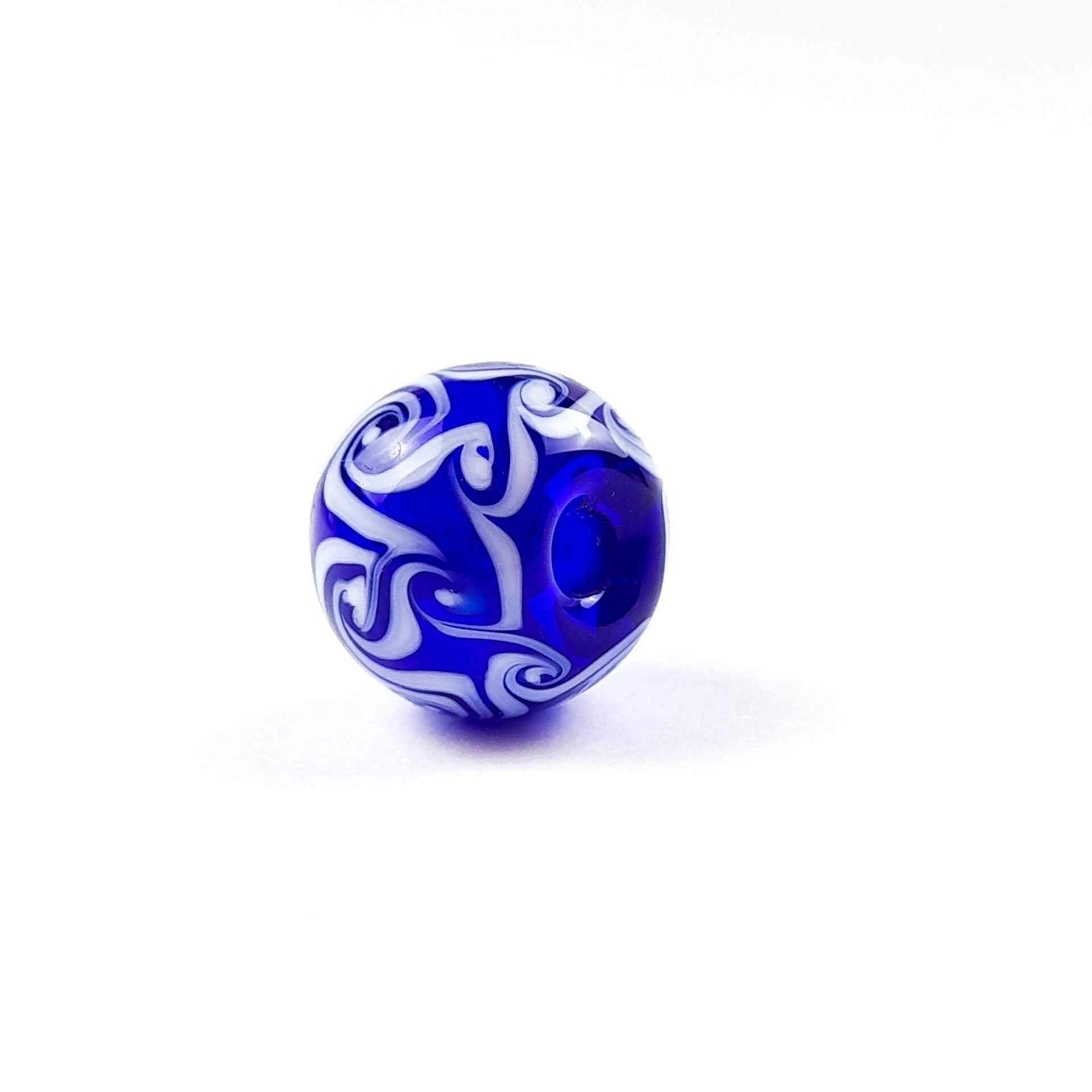 Mit dieser Glasperle in transparentem dunkelblau mit einem weißen Wirbel-Muster kannst Du zu einem besonderen Schmuckstück verarbeiten und dadurch Deine Freude an Deiner Kreativität und deine Einzigartigkeit zum Ausdruck bringen.