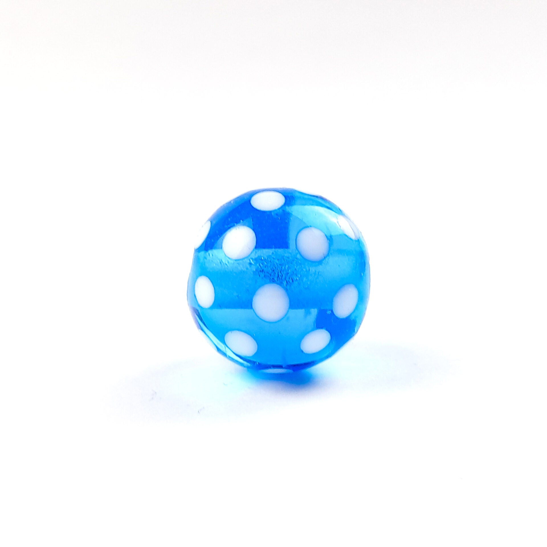 Mit dieser Glasperle in transparentem helltürkis mit einem weißen Punkt-Muster kannst Du zu einem besonderen Schmuckstück verarbeiten und dadurch Deine Freude an Deiner Kreativität und deine Einzigartigkeit zum Ausdruck bringen.