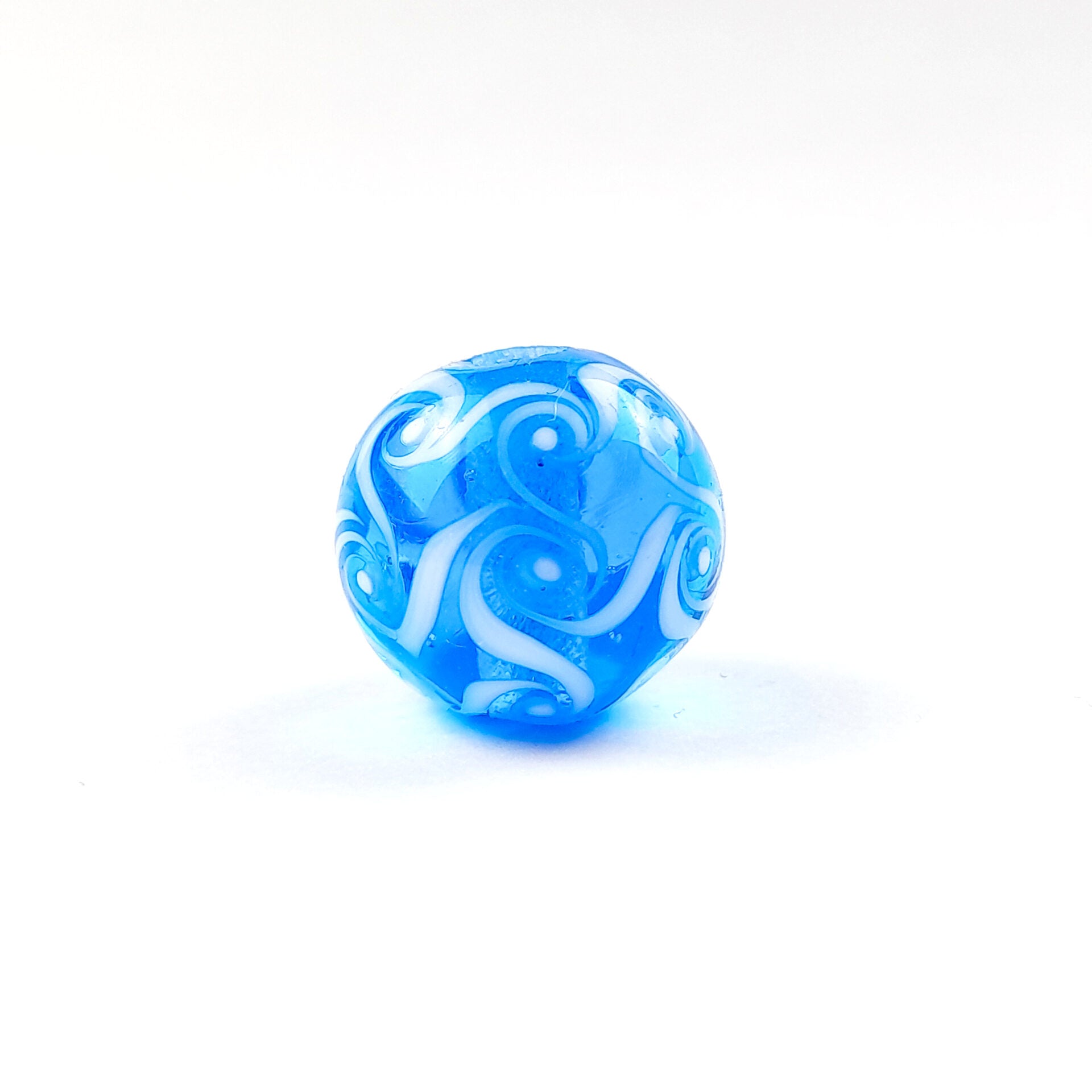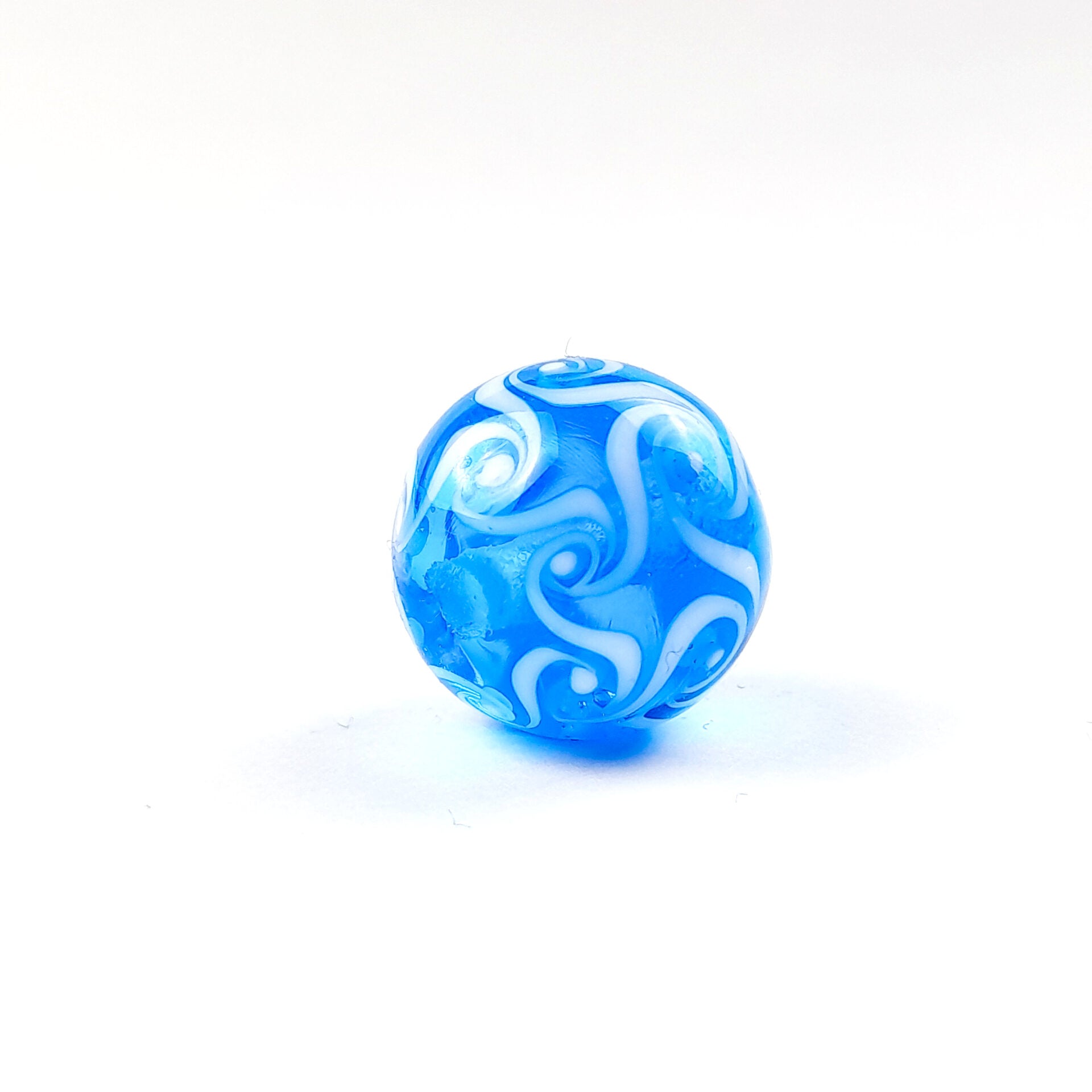Mit dieser Glasperle in transparentem helltürkis mit einem weißen Wirbel-Muster kannst Du zu einem besonderen Schmuckstück verarbeiten und dadurch Deine Freude an Deiner Kreativität und deine Einzigartigkeit zum Ausdruck bringen.