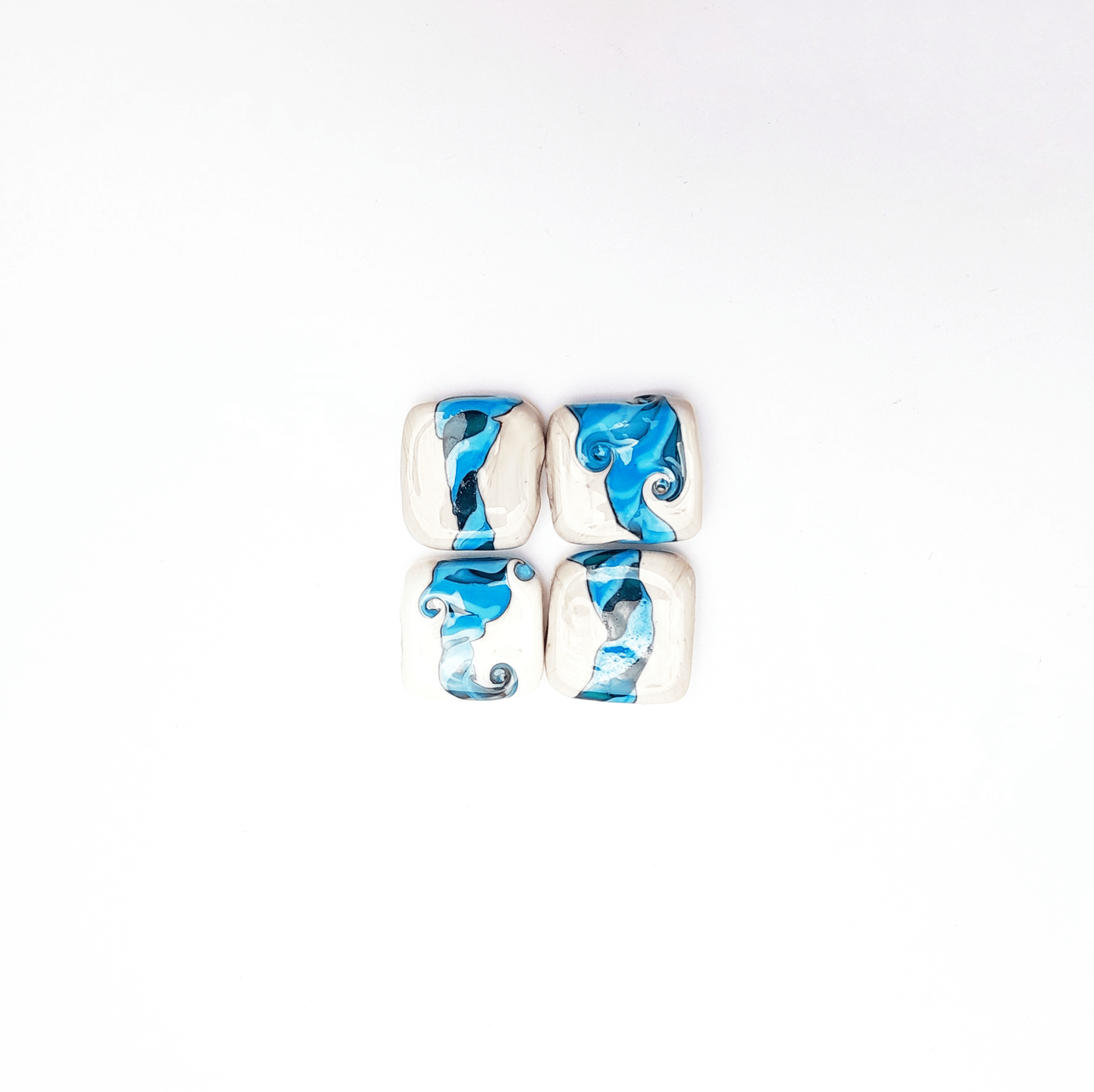 Handgefertigte Glasperle in beige-türkis Quadrat