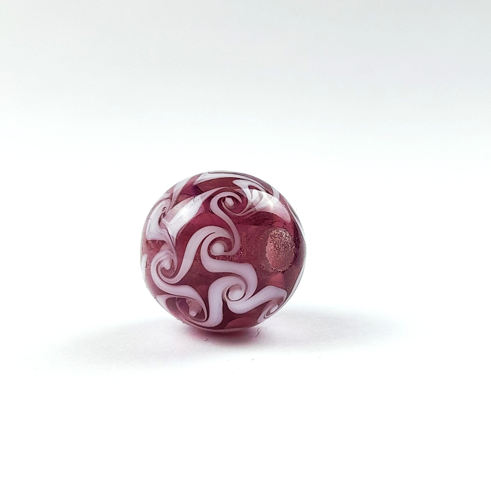 Mit dieser Glasperle in transparentem lila mit einem weißen Wirbel-Muster kannst Du zu einem besonderen Schmuckstück verarbeiten und dadurch Deine Freude an Deiner Kreativität und deine Einzigartigkeit zum Ausdruck bringen.