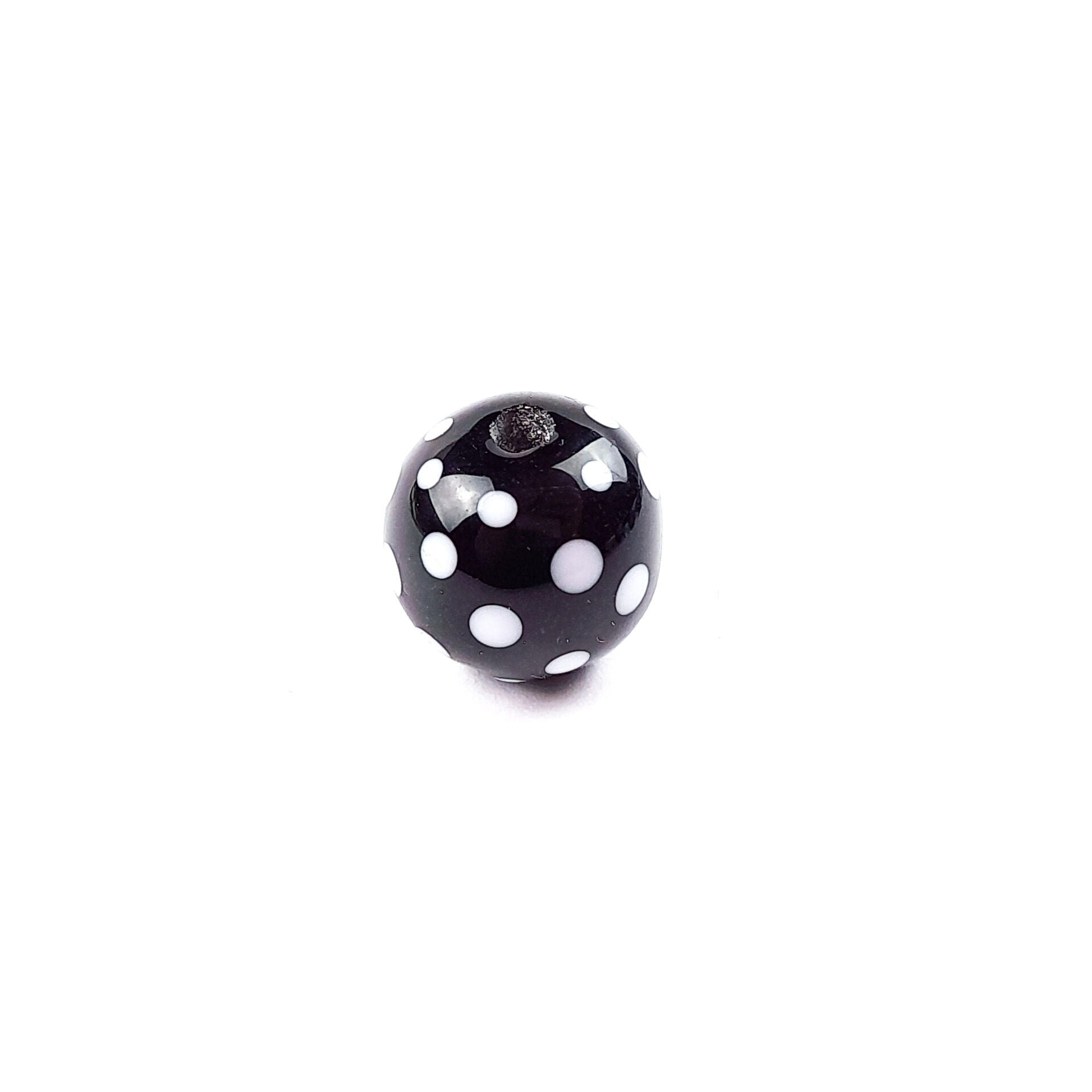 handgefertigte Glasperle schwarz Punkte