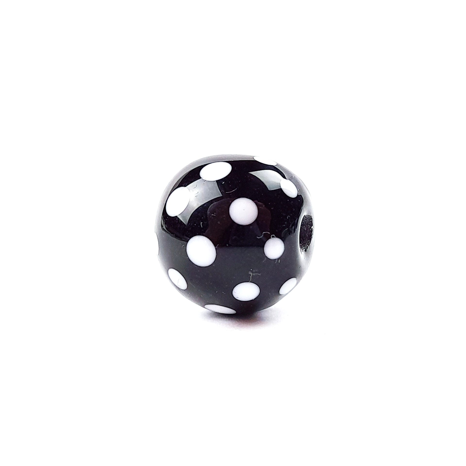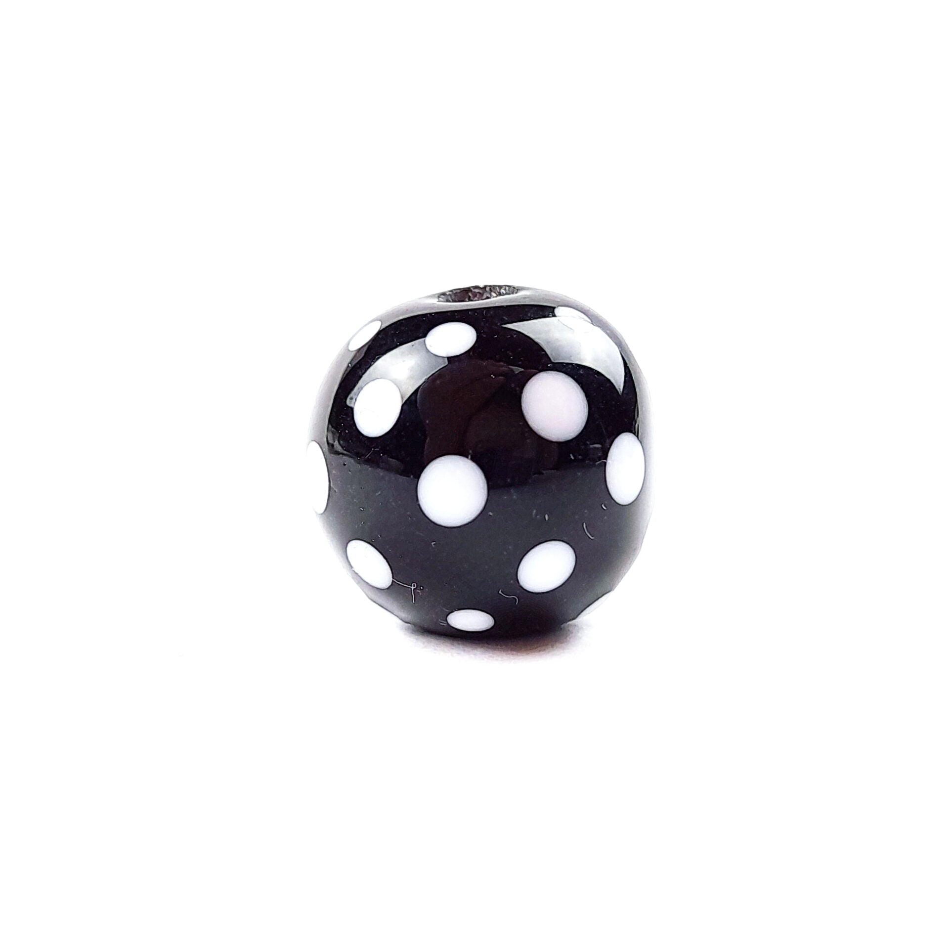Mit dieser Glasperle in schwarz mit einem weißen Punkte-Muster kannst Du zu einem besonderen Schmuckstück verarbeiten und dadurch Deine Freude an Deiner Kreativität und deine Einzigartigkeit zum Ausdruck bringen.