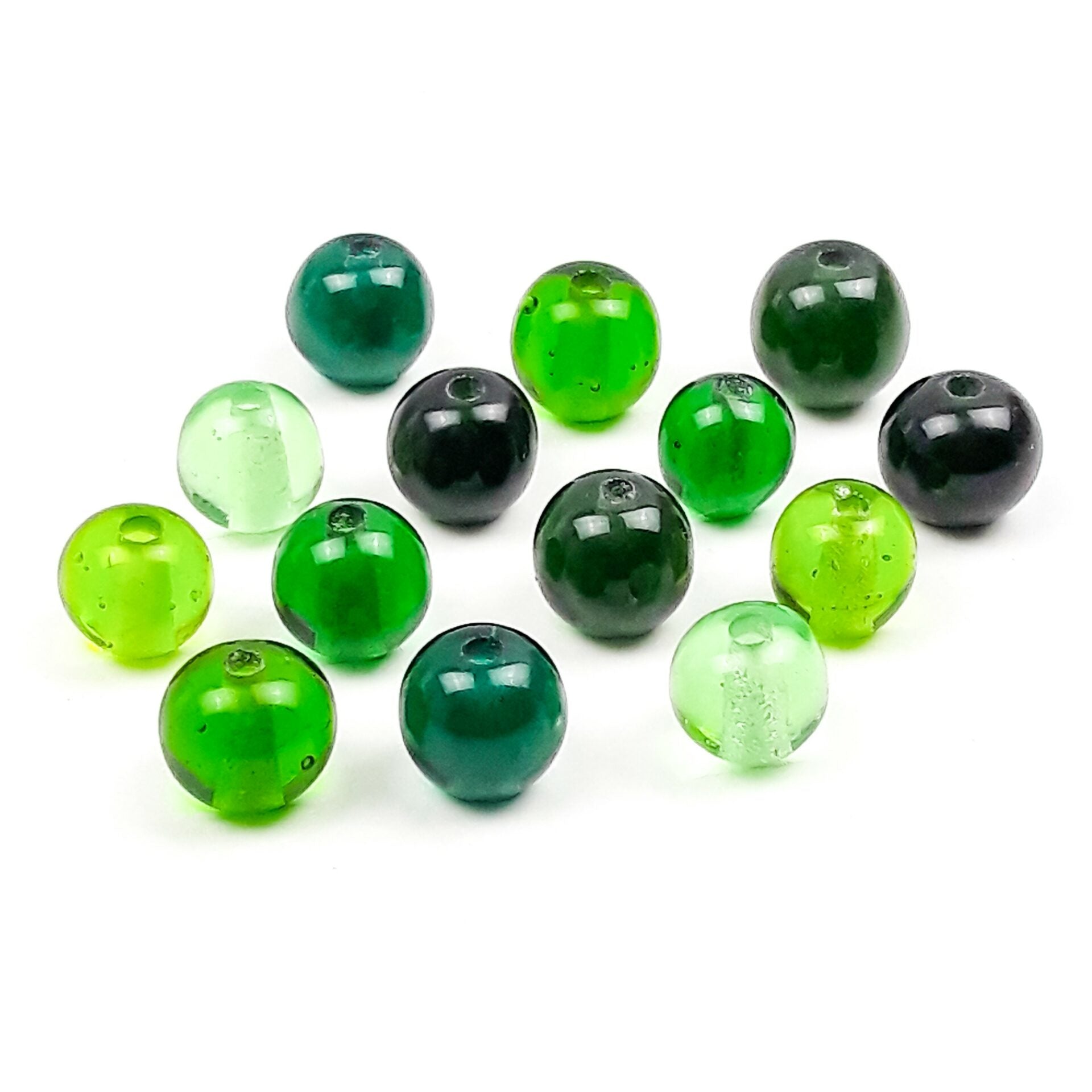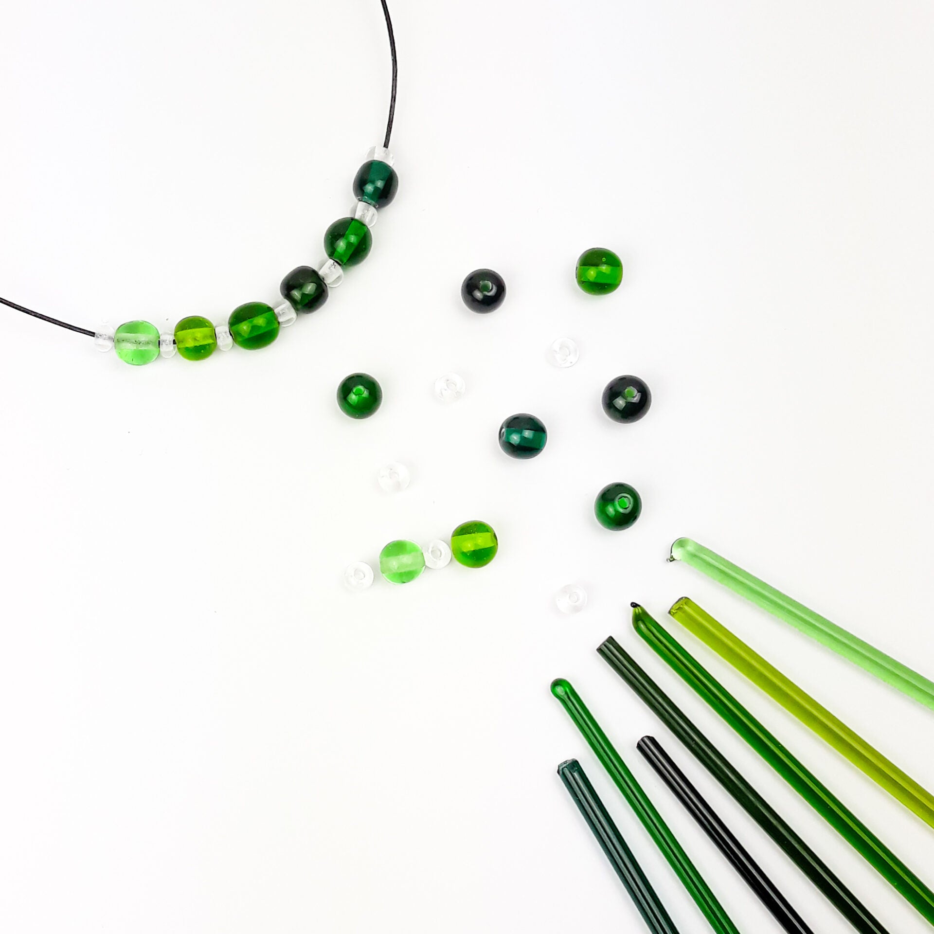 Diese Glasperlen bestehen aus einfarbig transparentem Glas und haben 6 verschiedene Grüntöne. Die Glasperlen können von Dir zu individuellen Schmuckstücken verarbeitet werden. Durch ein selbstgemachtes Schmuckstück kannst Du Deine Freude an Deiner Kreativität und Deine Einzigartigkeit zum Ausdruck bringen.