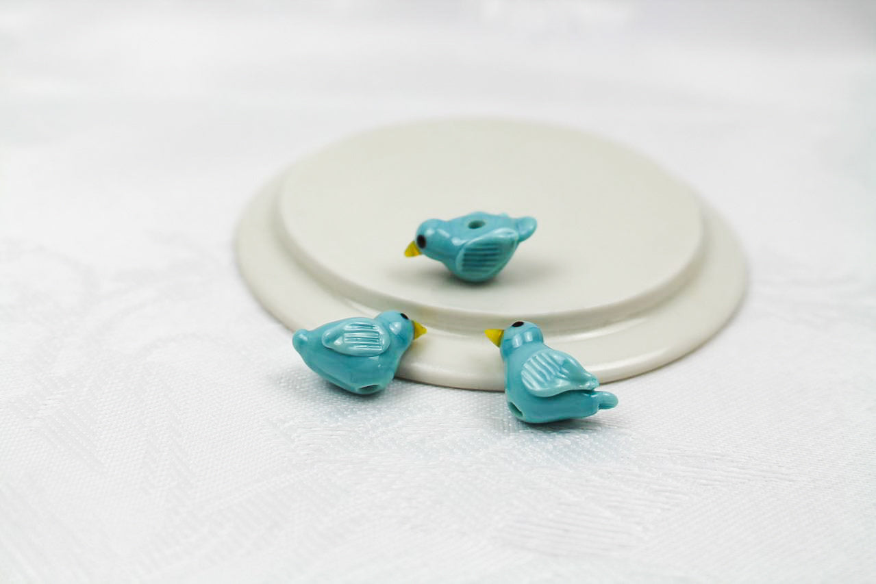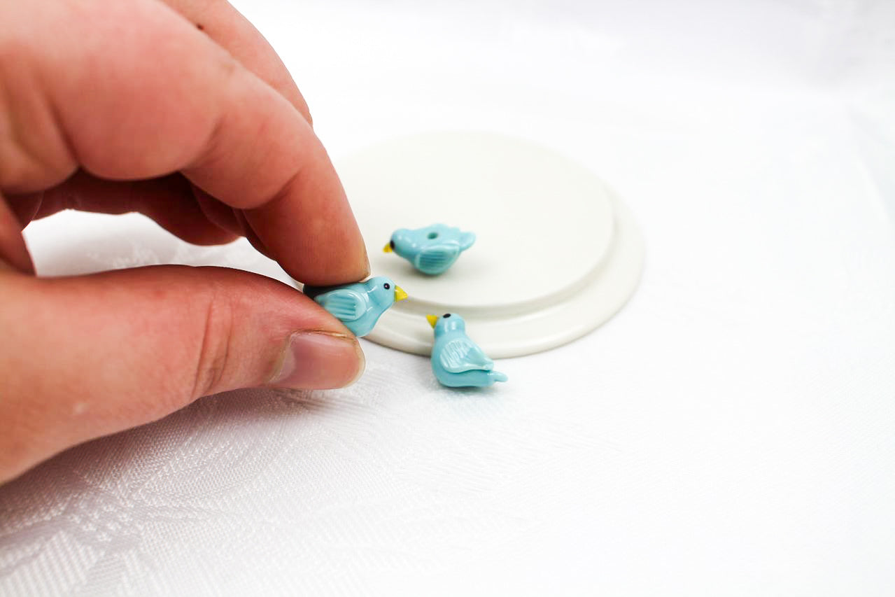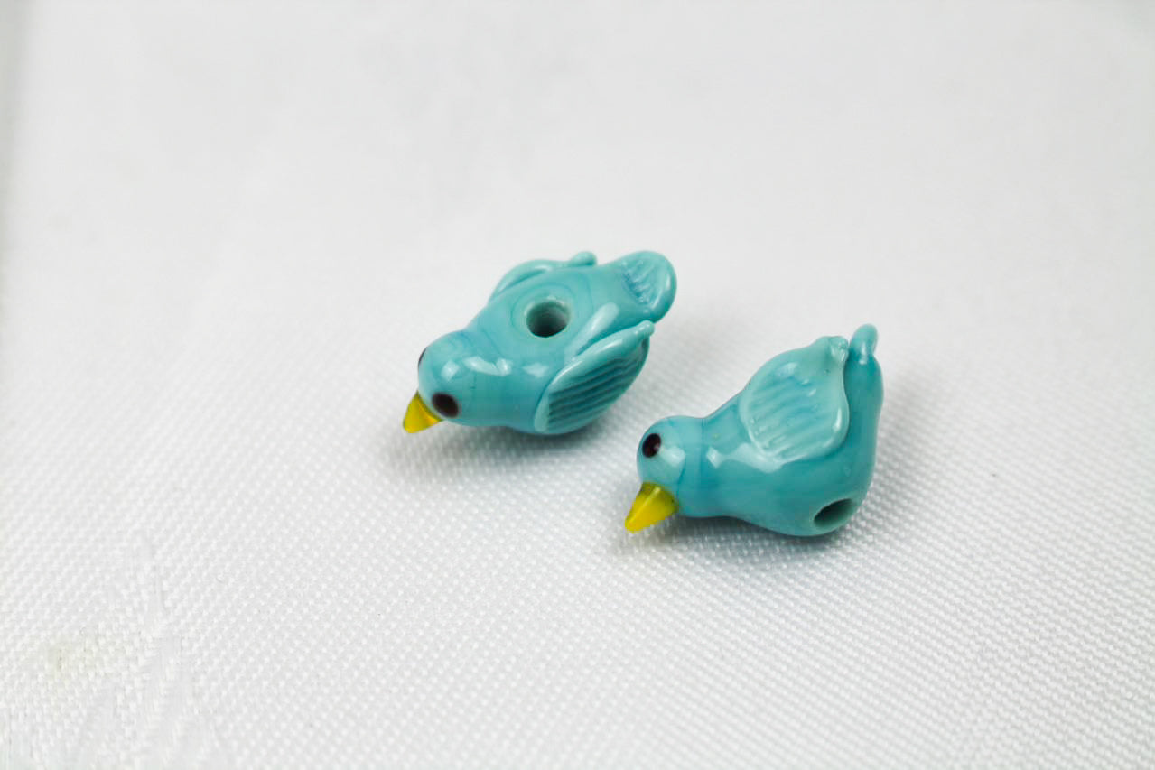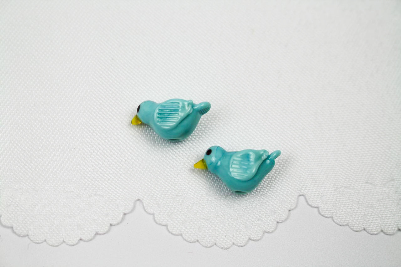 Mit dem Kauf erhältst du 2 handgedrehte Glasperlen in Form eines Vögelchens.