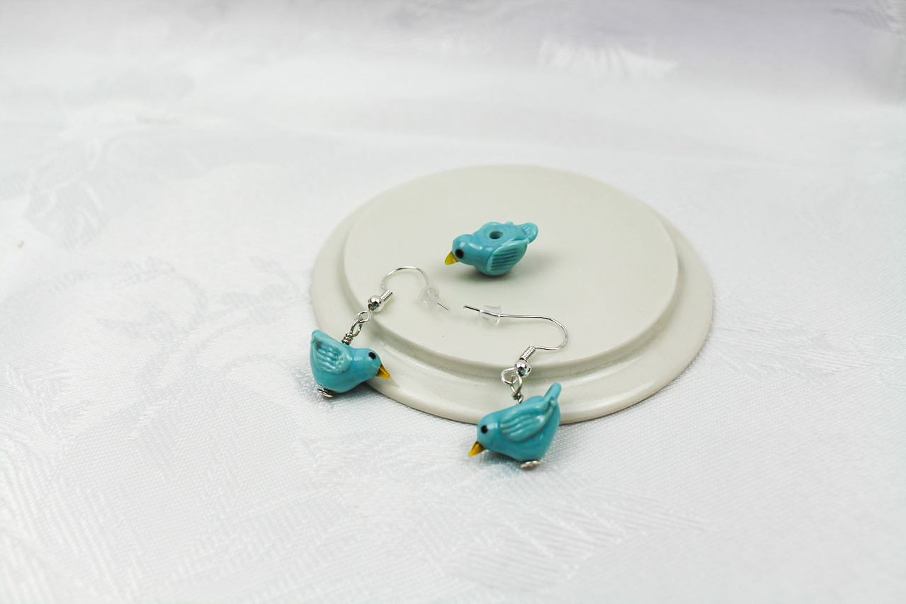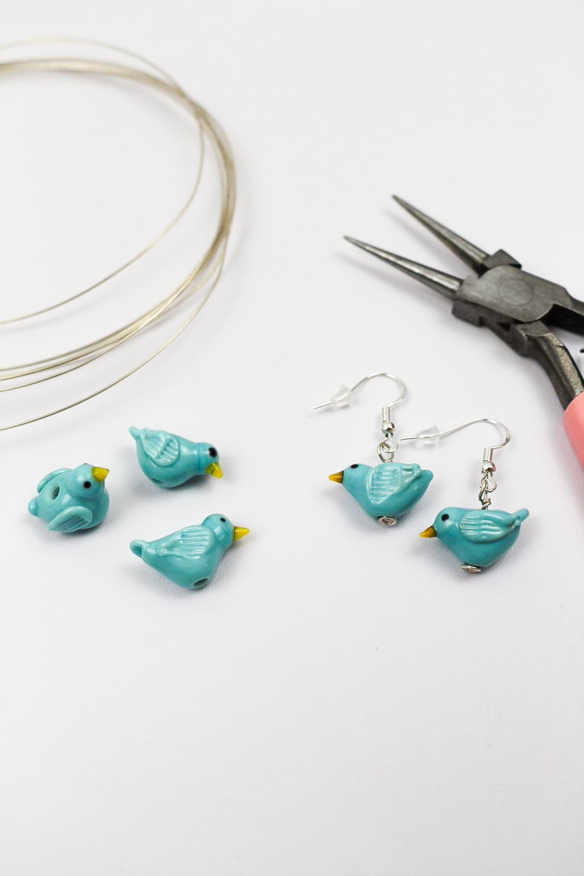 Eine Glasperle in Form eines Vögelchens lässt sich super zu einem handgefertigten Schmuckstück für einen herbstlichen Look oder für den Frühling verarbeiten.